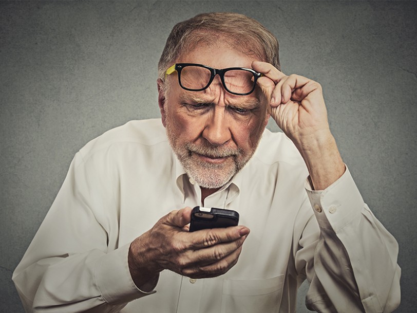 Gammelmandssyn: Øjets linse bliver stiv og uelastisk med alderen, så det kan ikke stille skarpt på korte afstande.
