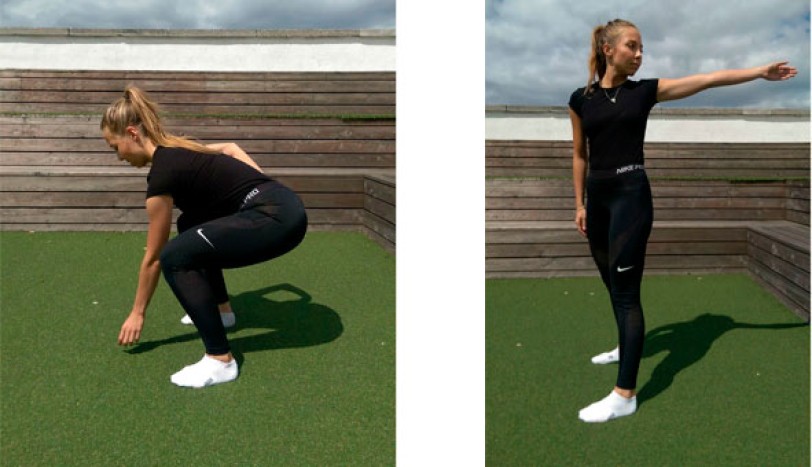 Gentag øvelsen 10-15 gange, hvil kort, og lav yderligere to serier ligeledes med pause imellem runderne, så du laver i alt tre serier á 10-15 gentagelser.